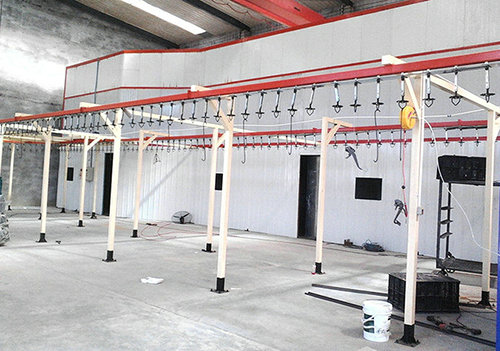 噴漆流水線設(shè)備適用于工件表面的噴漆、噴塑處理,多用于單件或小批量工件的涂裝作業(yè),配合懸掛輸送機(jī)、電軌小車(chē)、地面輸送機(jī)等運(yùn)送機(jī)械形成運(yùn)輸作業(yè)。
